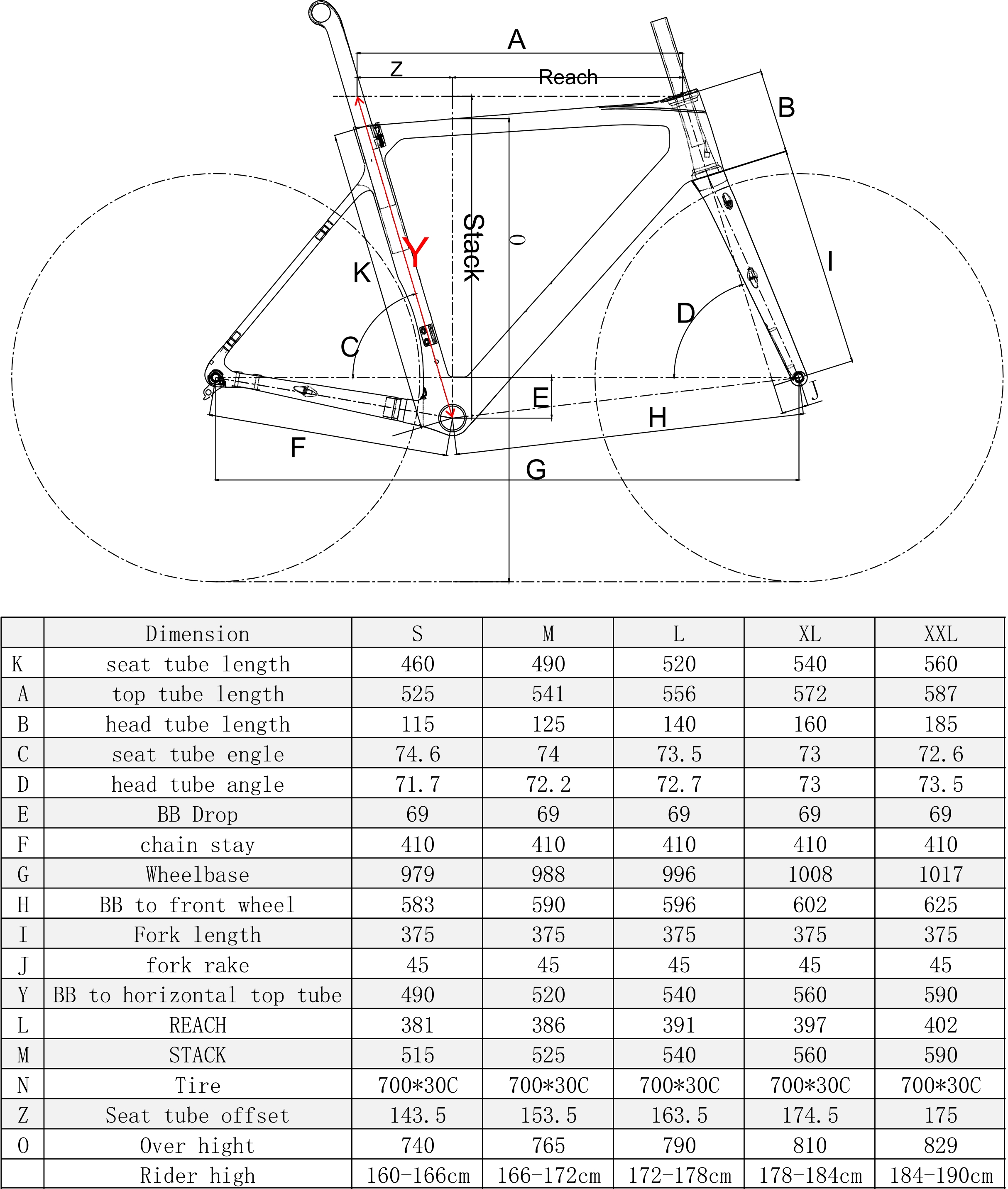 Frame Weight: S 790g, M 820g, L 840g, XL 865g, XXL 920g